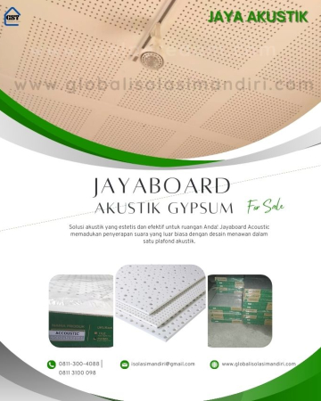 Gypsum JayaBoard Akustik – Solusi Peredam Suara Berkualitas untuk Ruangan Nyaman Gypsum JayaBoard Akustik merupakan panel gypsum khusus yang dirancang untuk meningkatkan kualitas akustik ruangan dengan cara menyerap suara dan mengurangi gema (echo). Produk ini banyak digunakan pada ruang kantor, studio musik, auditorium, ruang meeting, sekolah, rumah ibadah, hingga home theater karena kemampuannya menciptakan suasana… selengkapnya